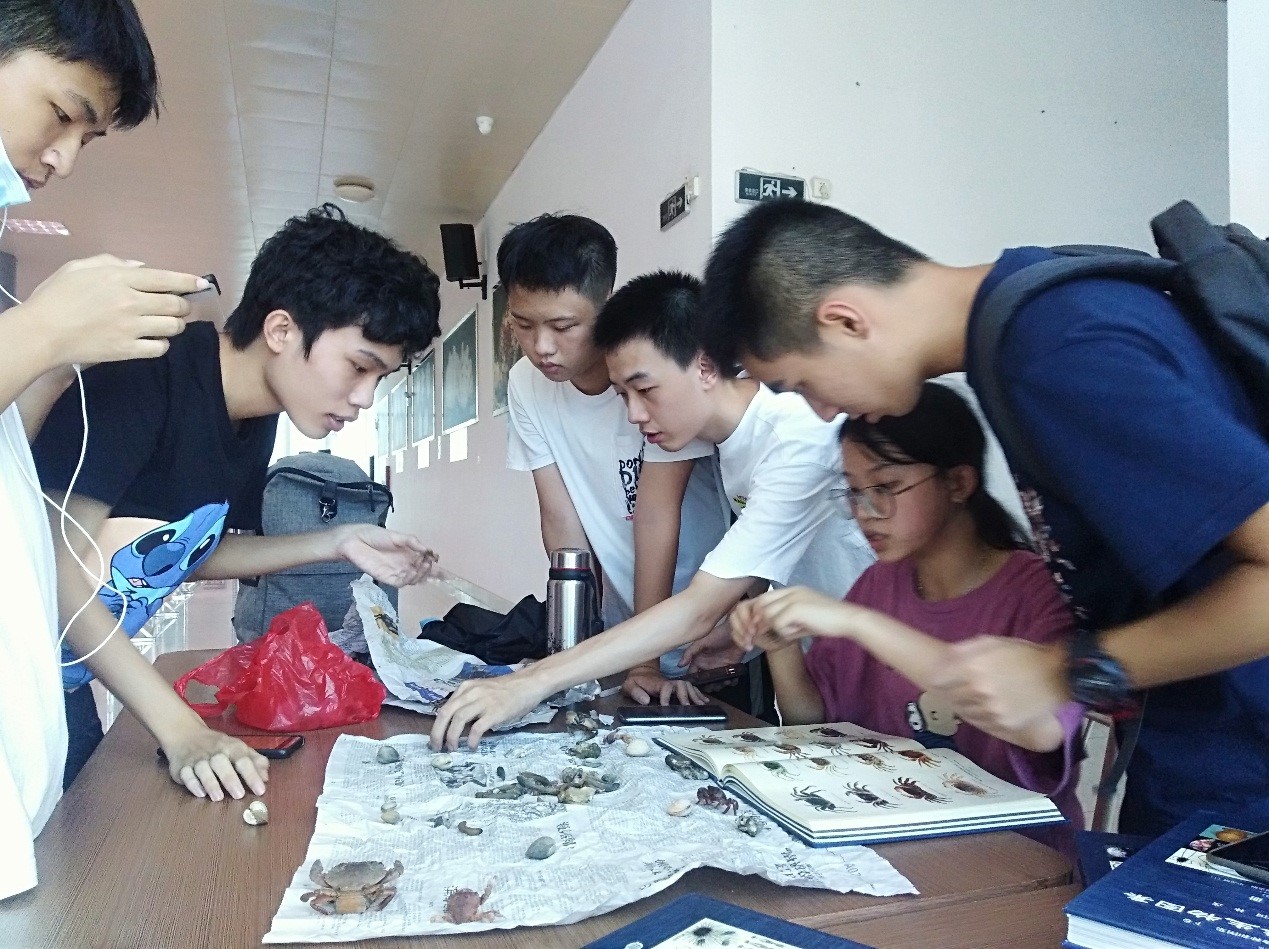 活动内容包含采样教育训练、采样东西预备、现场收集标本、分类判定等环节。活动别离于9月1日和9月7日前往湛江南三岛和湛江雷州珍稀海洋生物国家级自然保护区的海滩进行海洋生物收集。同学们收集了很多沿岸海洋生物,如海绵动物、刺胞动物、棘皮动物、软体动物、鱼类等。标本收集后,同学们前往实验室和博物馆,在教师的指导下对这些海洋生物进行了分类和判定作业。